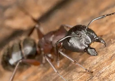 Carpenter AntsWood destroying carpenter ants are those large ants (typically black or dark colored) that excavate wood for the purpose of creating galleries. Unlike termites that actually consume wood, carpenter ants tunnel through wood in order to establish nesting spots where they focus on growing their numbers. They feed on honeydew, other insects, and provisions they pilfer from kitchens and pantries. Carpenter ants often enter structures that have wood that has been damaged by water or that is rotting. Left unaddressed, carpenter ants can cause extensive damage and for that reason are considered more than a nuisance. -