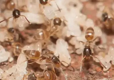Thief AntsSmall in size and known for their habit of stealing larvae and pupae from other ant nests, thief ants are shiny, smooth ants that range in color from yellow to bronze to dark brown. They create their nests beside other ant colonies so that they can raid them. Interestingly enough, they create tiny tunnels to gain access to the neighboring ant colonies they intend to steal from. -