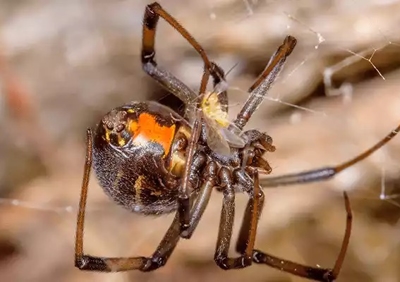 Brown Widow SpidersThe brown widow spider is a medium sized spider and is a bit smaller in size than its cousin the black widow spider. These spiders can be dark grey, brown, or black in color and have a striped pattern on the legs and topside of their bodies and brown mottling on their bottom sides. Like black widow spiders, brown widows have hourglass-like shaped markings on their abdomens, however rather than red in color, theirs is bright orange or a yellowish color. They can also be identified by their distinctive egg sac with is spiky or tufted in appearance. The webs this spider creates are tangled and messy looking.